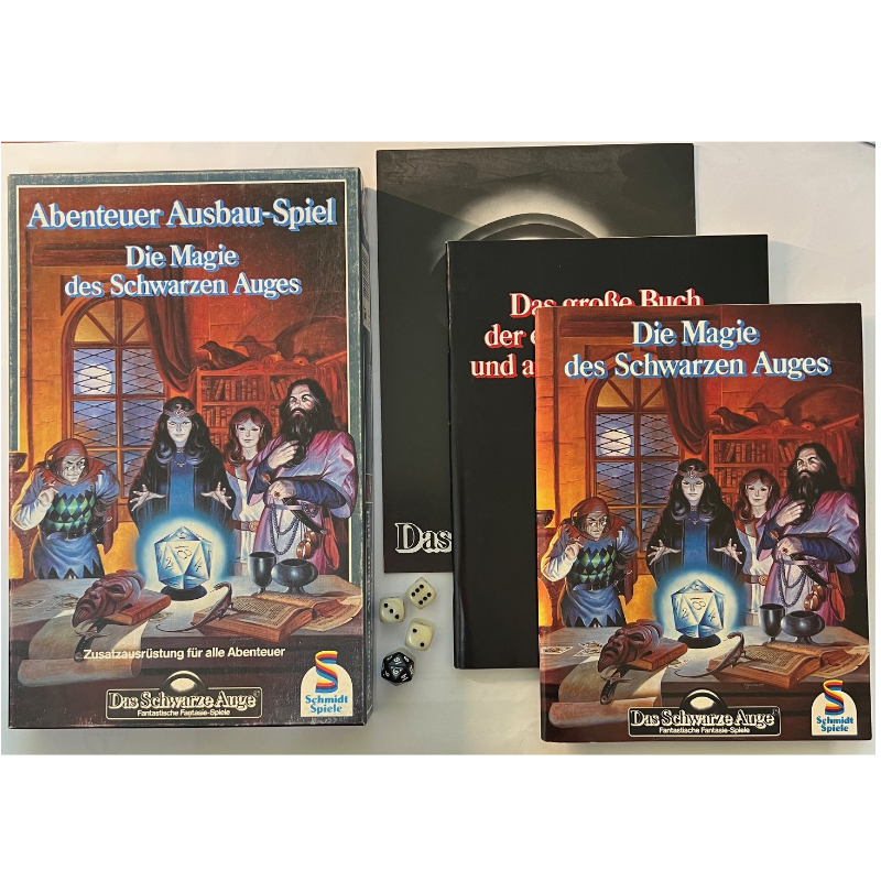 1989 war es soweit – für das Fantasy-Rollenspiel Das Schwarze Auge erschien bei Schmidt Spiele in der Reihe der Regelwerke DSA2 die erste eigenständige Box zum Thema Magie: Abenteuer-Ausbau-Spiel Die Magie des Schwarzen Auges.