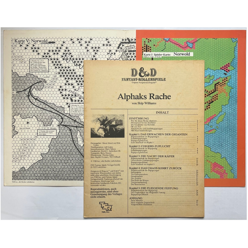Wir bieten für das Fantasy-Rollenspielsystem D&D Dungeons & Dragons das 1984 von FSV veröffentlichte Abenteuer M2 Alphaks Rache für Charaktere der Stufen 28 bis 32 an.