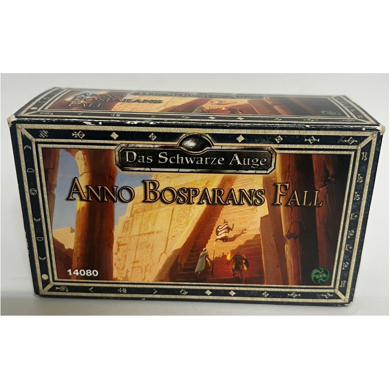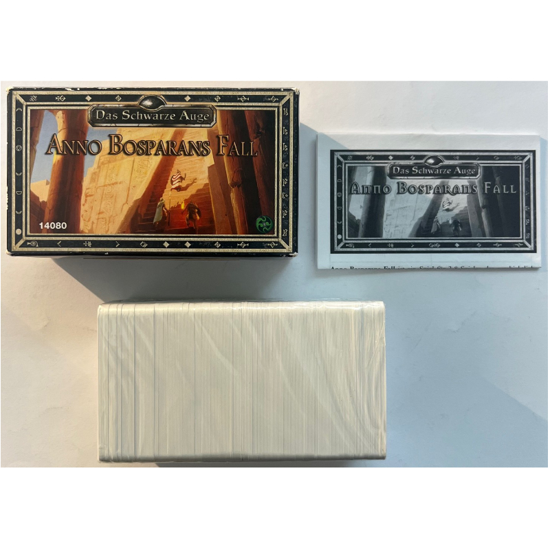 Anno Bosparans Fall bereitet die Geschichte aus Deutschlands erfolgreichstem Fantasy-Rollenspiel, Das Schwarze Auge, auf vergnügliche Art und Weise auf. Bringen Sie die 336 historischen Ereignisse in dieser Schachtel in die richtige Reihenfolge. Es darf auch geblufft werden, denn nur wer seine Karten als erstes ablegt kann gewinnen!