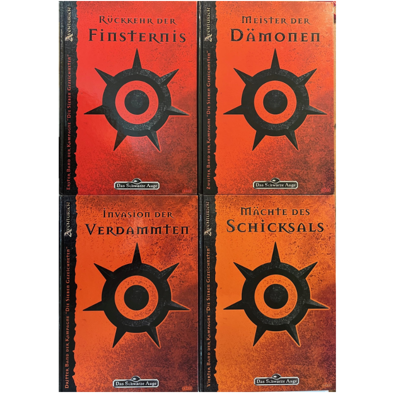 Wir bieten hier für das Rollenspiel DSA – Das Schwarze Auge von FanPro die komplette Borbarad-Kampagne Die sieben Gezeichneten (4 Bände) an.