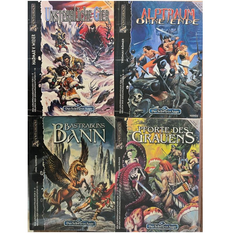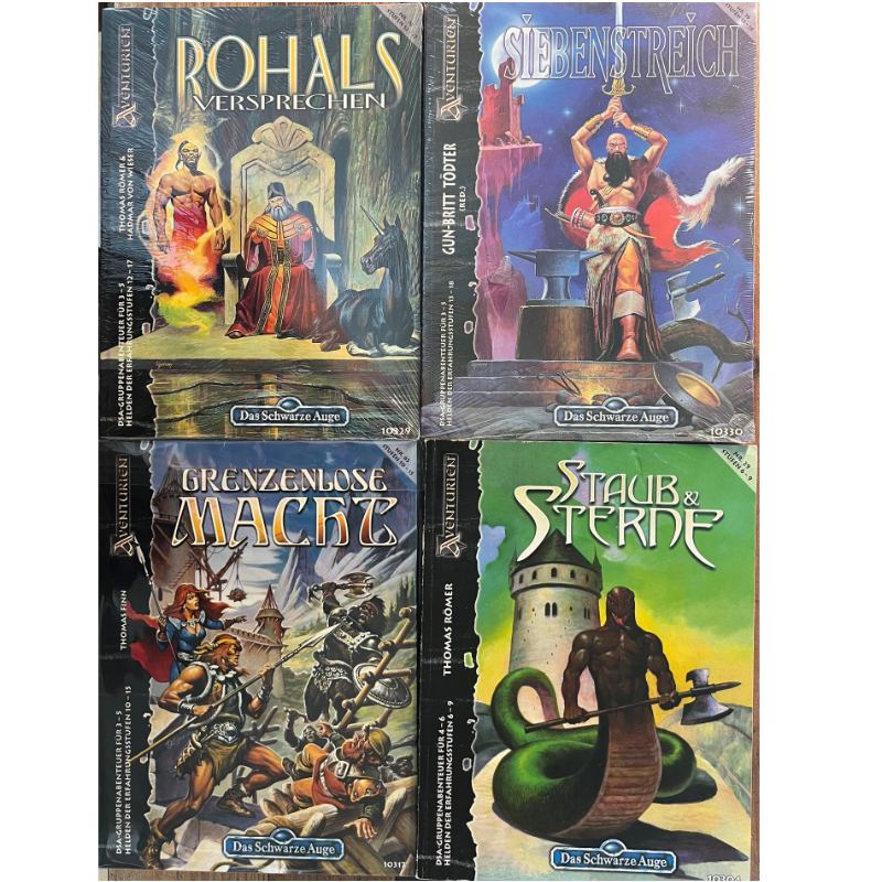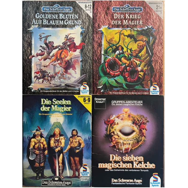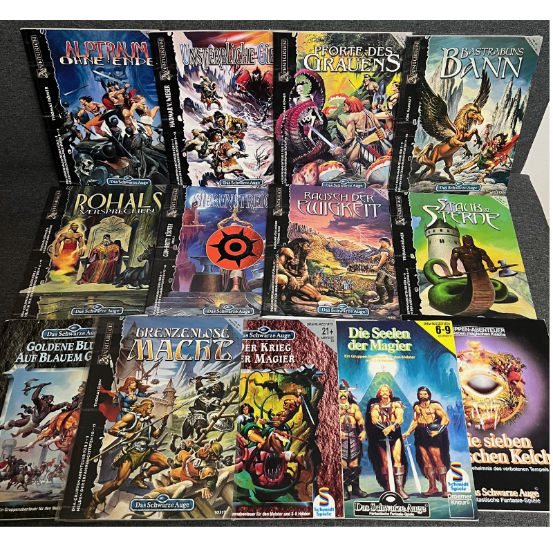Die Bände 5 bis 7 gibt es nur von FanPro (die nach Übernahme der Lizenz die Publikationen zu DSA fortführten) ; die Bände 1 bis 4 sowohl von FanPro als auch von Schmidt-Spiele – inhaltlich völlig identisch; jedoch sind diese ersten 4 Bände der Fan-Pro-Version selten.