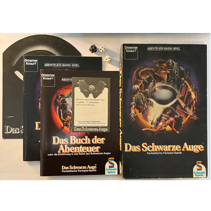 Wir bieten hier für das Rollenspielsystem Das Schwarze Auge von Schmidt-Spiele das originale Abenteuer-Basis-Spiel von 1984 in der zensierten zweiten Version an.