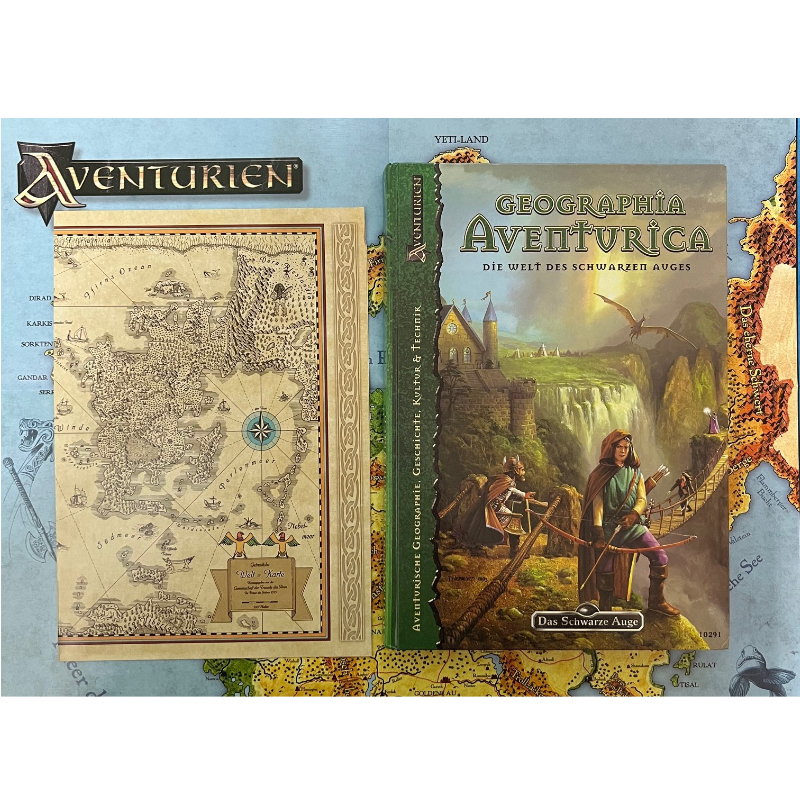 Wir bieten hier die Spielhilfe Geographia Aventurica Die Welt des Schwarzen Auges an; der Band ist der grünen Reihe des aventurischen Regionen zuzurechnen. Regeltechnisch orientiert sich der Band an der Regelversion 4 (DSA4), kann aber natürlich auch für die vorherigen oder späteren Versionen genutzt werden; dann müssen halt nur die (eher wenigen) Werte-Angaben angepasst werden.