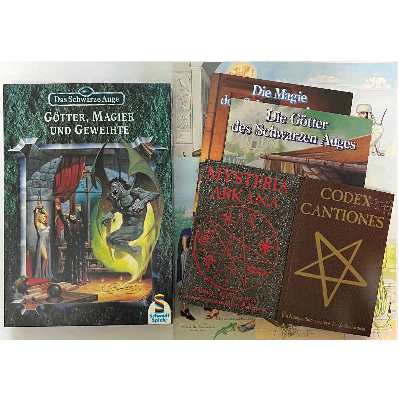 - Die beiden A4-Bände Magie und Götter weisen am Cover nur minimalste Lagerungsspuren auf (rückseitig am Rand zum rücken hin winzige Kratzer); sind sonst prächtig farbfrisch wie neu erhalten. Die Bände selbst sind neu und unbespielt