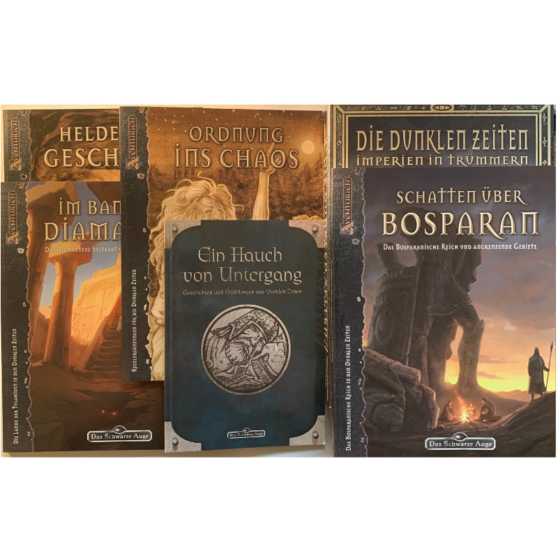 Wir bieten hier für das Rollenspielsystem Das Schwarze Auge von Schmidt-Spiele die Settingbox Die Dunklen Zeiten – Imperien in Trümmern an.