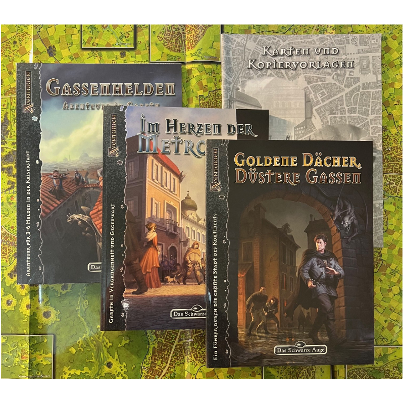 - Gassenhelden – Abenteuer in Gareth, einen Abenteuerband mit Szenarien und einer dreiteiligen Stadtkampagne