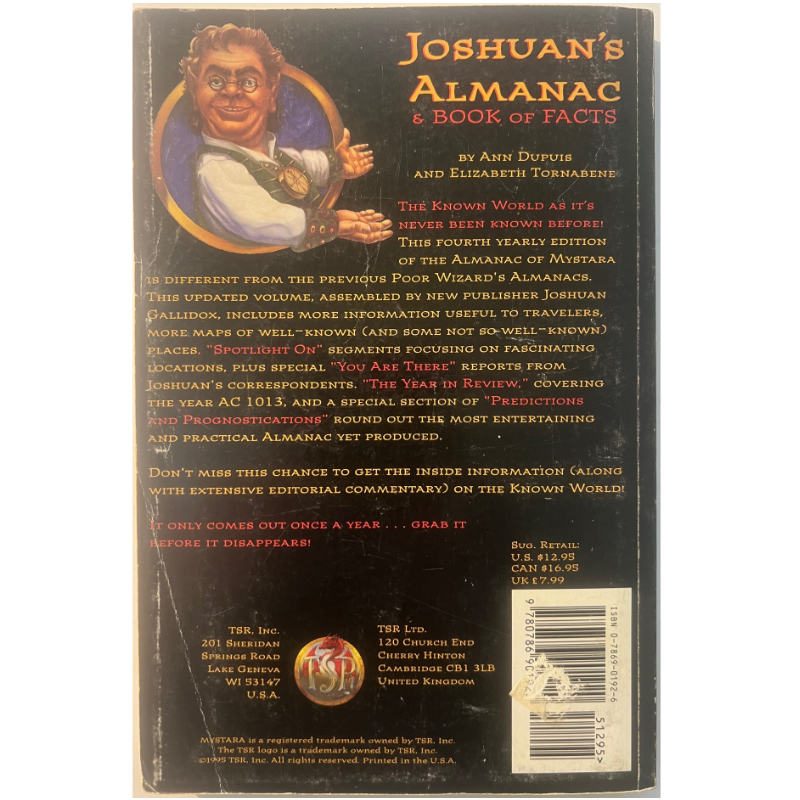 Wir bieten für das Fantasy-Rollenspielsystem D&D Dungeons & Dragons von TSR (R) die 1995 veröffentlichte Spielhilfe Joshuan’s Almanac an.