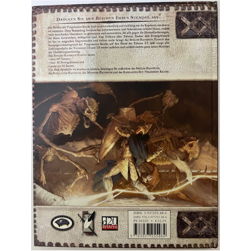 Wir bieten für das Fantasy-Rollenspielsystem D&D Dungeons & Dragons von Wizards of the Coast / Feder&Schwert die 2005 veröffentlichte Spielhilfe Spieler-Handbuch Faerun – Kampagnen-Zubehör Vergessene Reiche an.