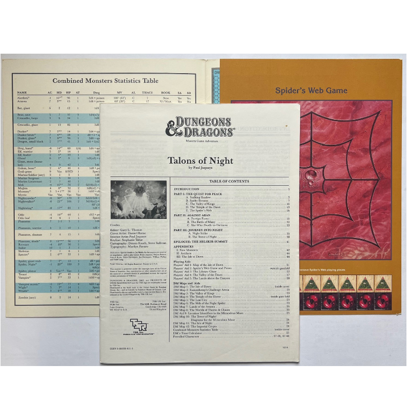 Wir bieten für das Fantasy-Rollenspielsystem D&D Dungeons & Dragons das 1987 von TSR veröffentlichte Abenteuer M5 Talons of Night für Charaktere der Stufen 20 bis 25 an. Der Band ist das Original von 1987, kein Nachdruck oder PoD.