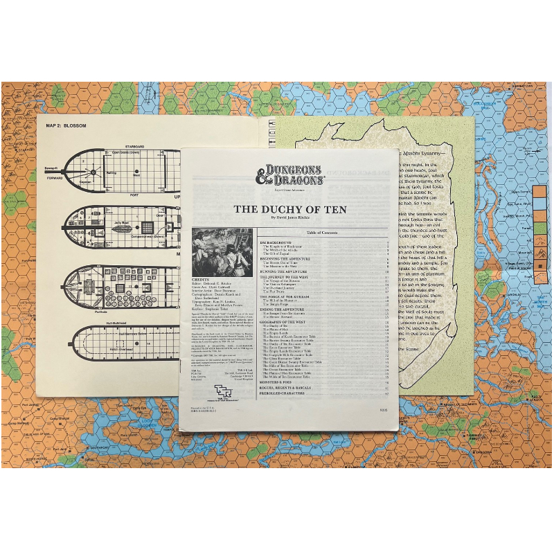 Wir bieten für das Fantasy-Rollenspielsystem D&D Dungeons & Dragons (R) das 1987 von TSR veröffentlichte Abenteuer DA4 The Duchy of Ten für Stufe 10-14 an.