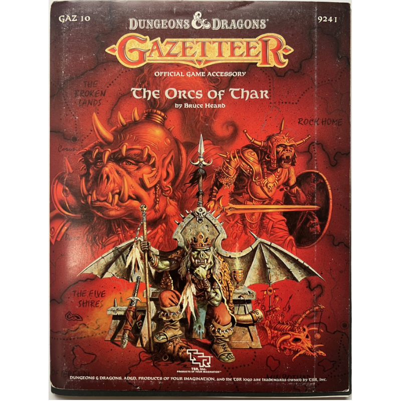 Wir bieten für das Fantasy-Rollenspielsystem D&D Dungeons & Dragons von TSR (R) das 1988 veröffentlichte Regionalmodul Gazetteer GAZ 10 The Orcs of Thar in der Version als Original von 1988 an (aktuell gibt es den Band auch als Print-on-demand /Nachdruck auf Bestellung ).
